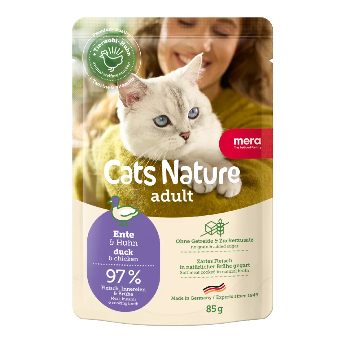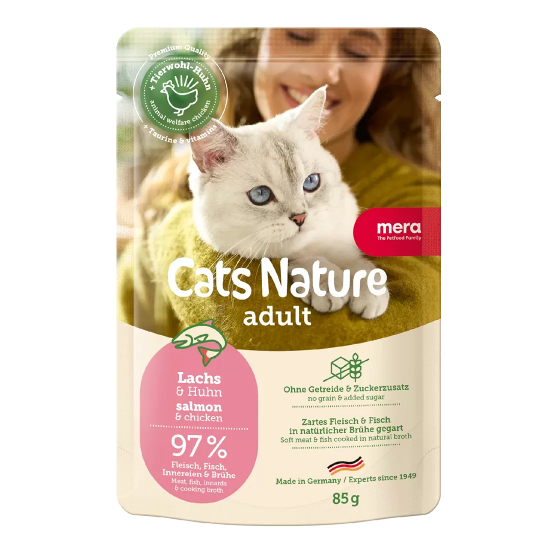 Ar Cats Nature jūs piedāvājat savam pūkainajam draugam augstas kvalitātes kaķu barību, kas ir lieliski pielāgota viņa dabiskajām vajadzībām. Mūsu receptes ir gatavotas ar lielu daudzumu svaigas gaļas un nesatur graudus un cukuru – optimālai sagremojamībai un tīrai baudai. Neatkarīgi no tā, vai tā ir sausā vai mitrā kaķu barība, Cats Nature nozīmē kaķim atbilstošu uzturu ar īpaši augstu gaļas saturu. Tādā veidā jūsu kaķis bļodā saņem sabalansētu un veselīgu sauso vai mitro kaķu barību, kas nodrošina tam enerģiju, barības vielas un baudu.