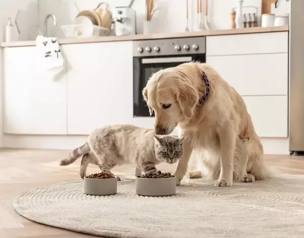 Veselīgas , bezrūpīgas cilvēka un dzīvnieka attiecības sākas gardu maltīti bļodā.